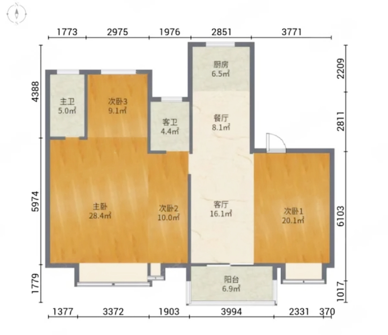 3室2厅1卫1厨 · 117.26㎡ 126万