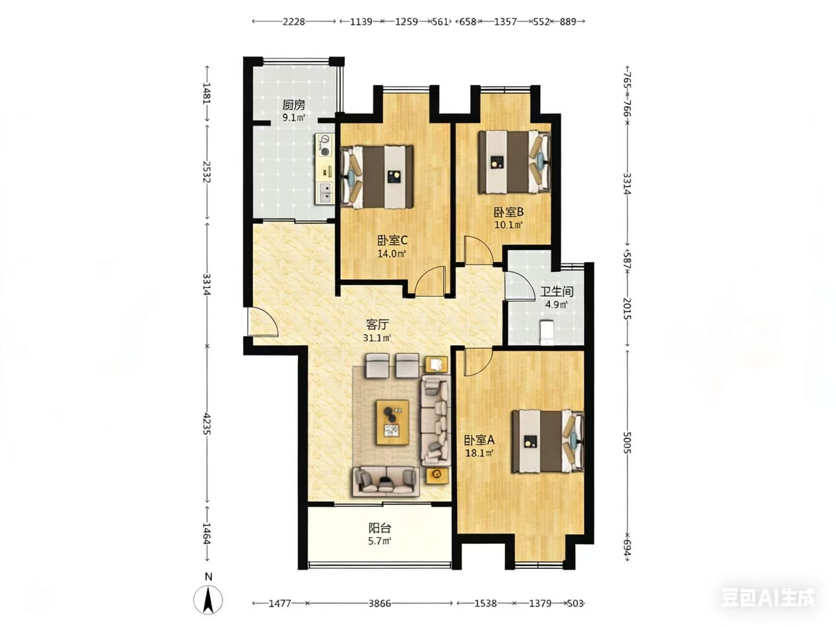 2室2厅1卫1厨 · 88.73㎡ 76万