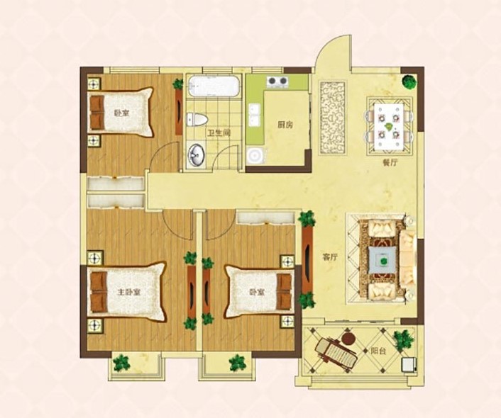 3室2厅1卫1厨 · 96.67㎡ 48.8万
