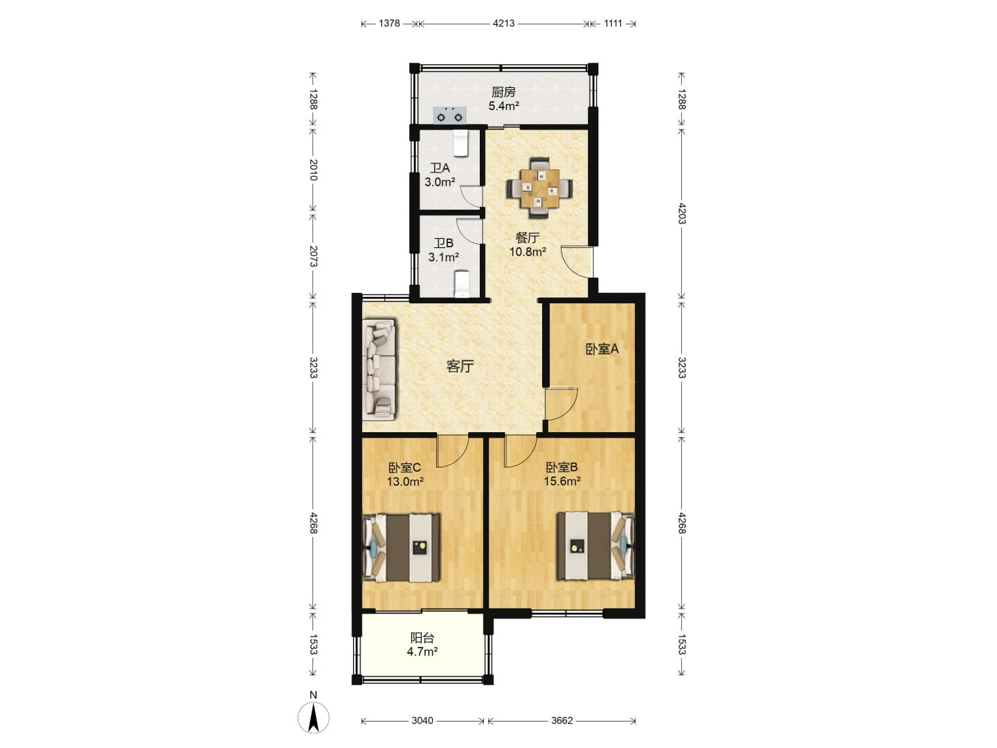 3室2厅1卫1厨