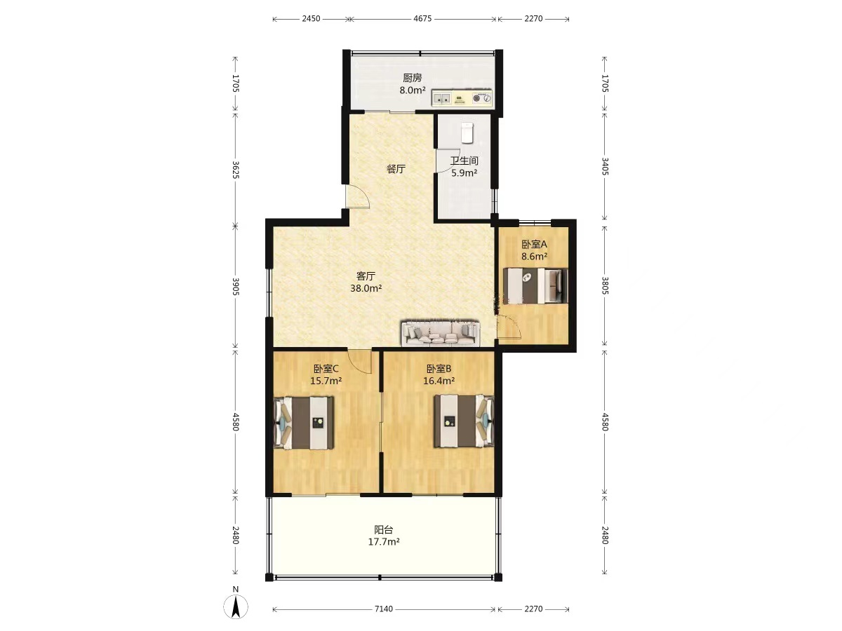 3室1厅1卫1厨 · 84.45㎡ 59.8万