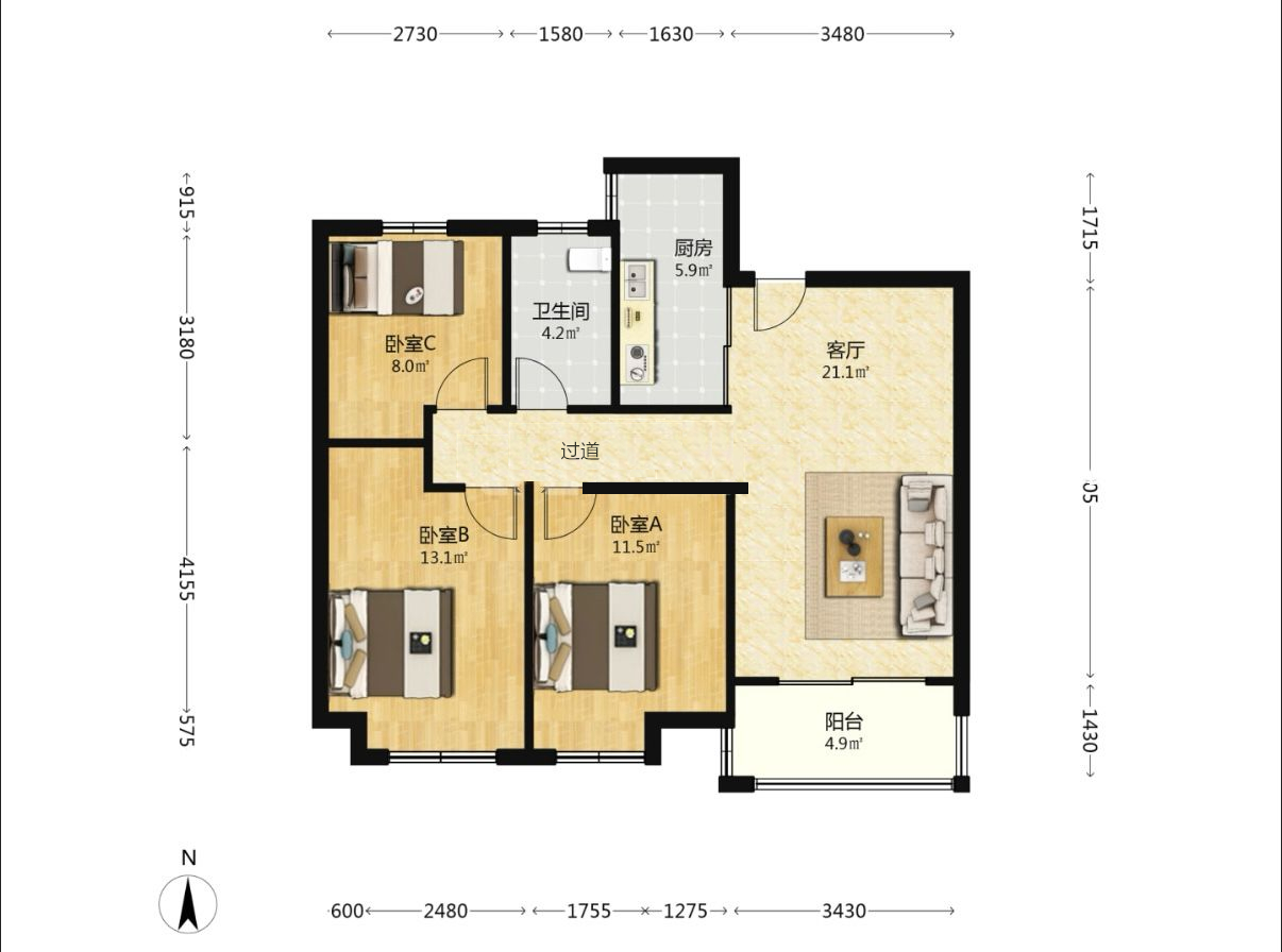 3室2厅1卫1厨