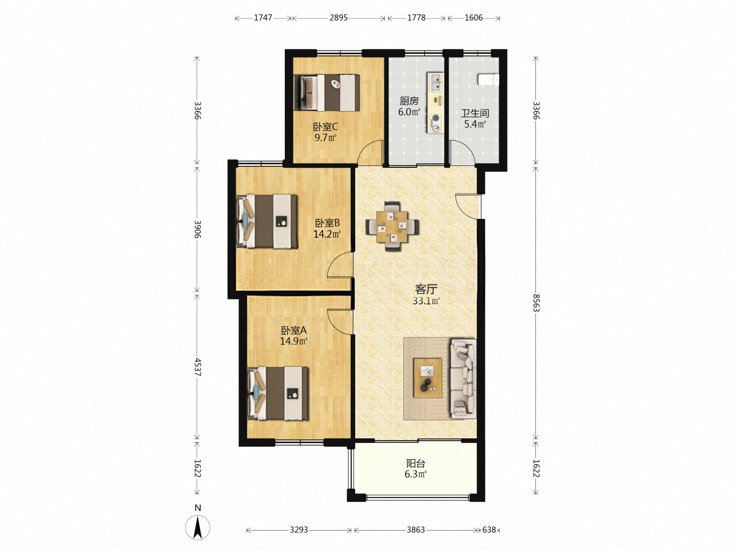 3室2厅1卫1厨 · 99.91㎡ 58.8万