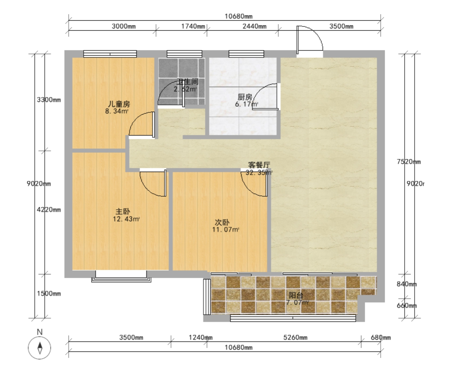 3室2厅1卫1厨