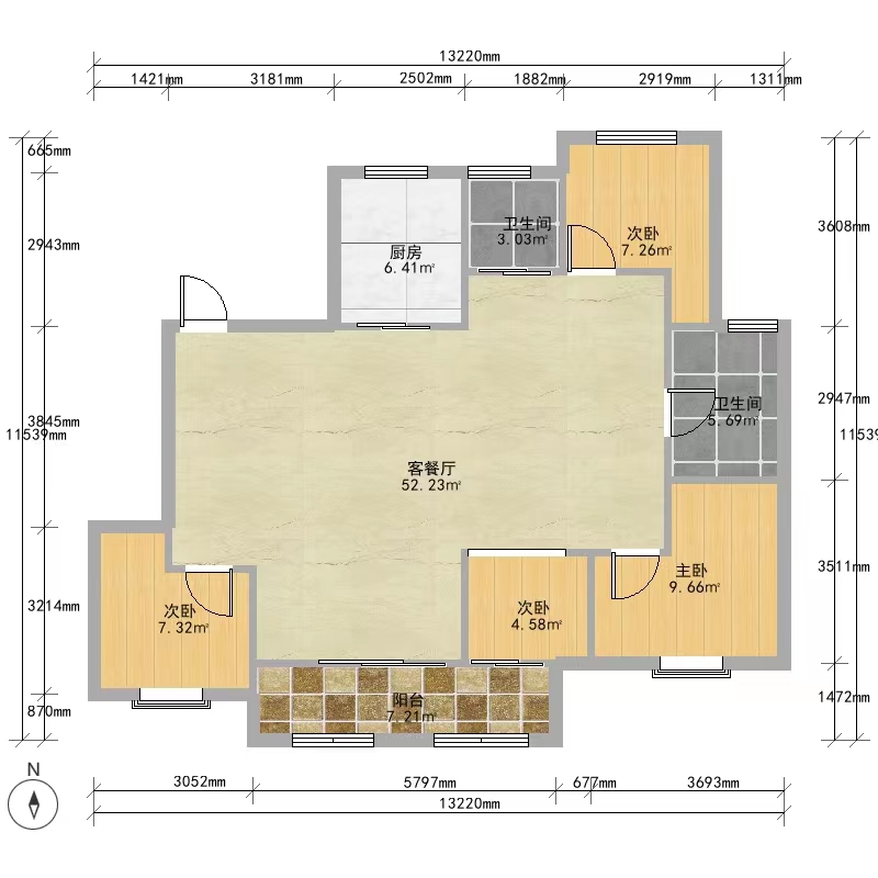 3室2厅1卫1厨 · 97㎡ 72万