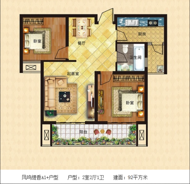 2室2厅1卫1厨 · 92.69㎡ 88万