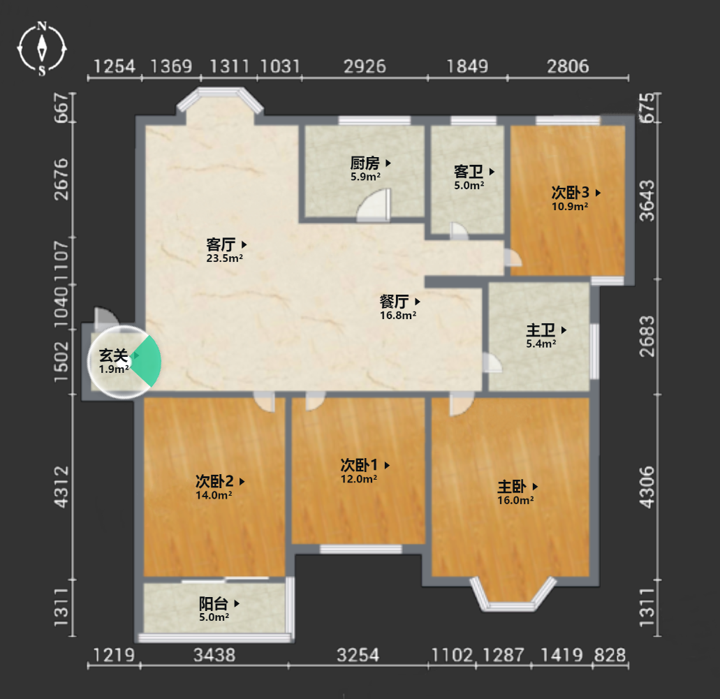 3室2厅1卫1厨 · 116.9㎡ 66.6万