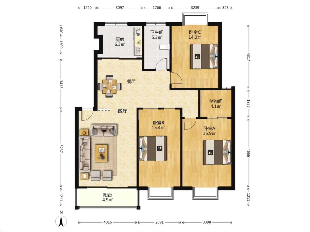 2室1厅1卫1厨 · 97㎡ 49.8万