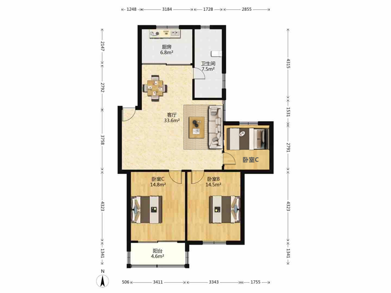 3室2厅1卫1厨
