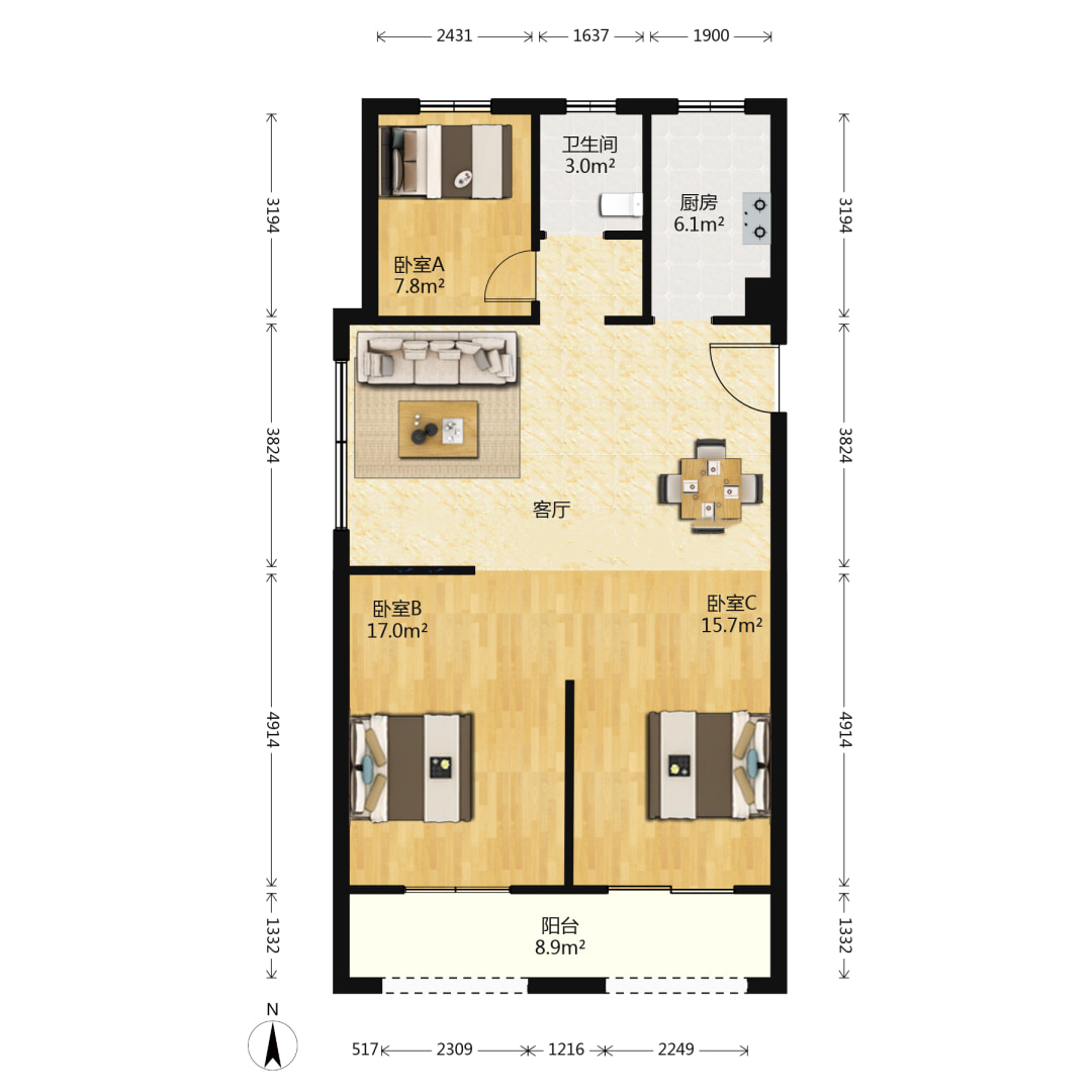 3室1厅1卫1厨 · 91㎡ 39万