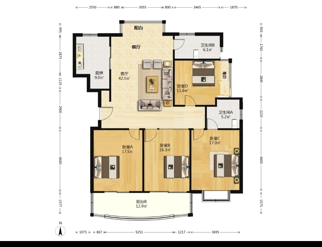 4室2厅2卫1厨 · 158㎡ 206万