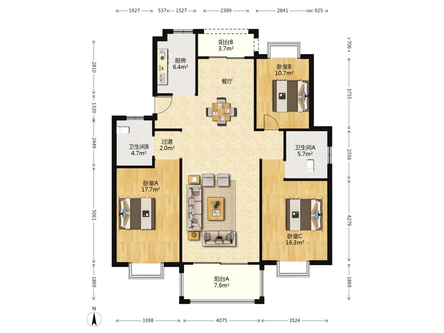 3室2厅2卫1厨 · 146㎡ 126.8万