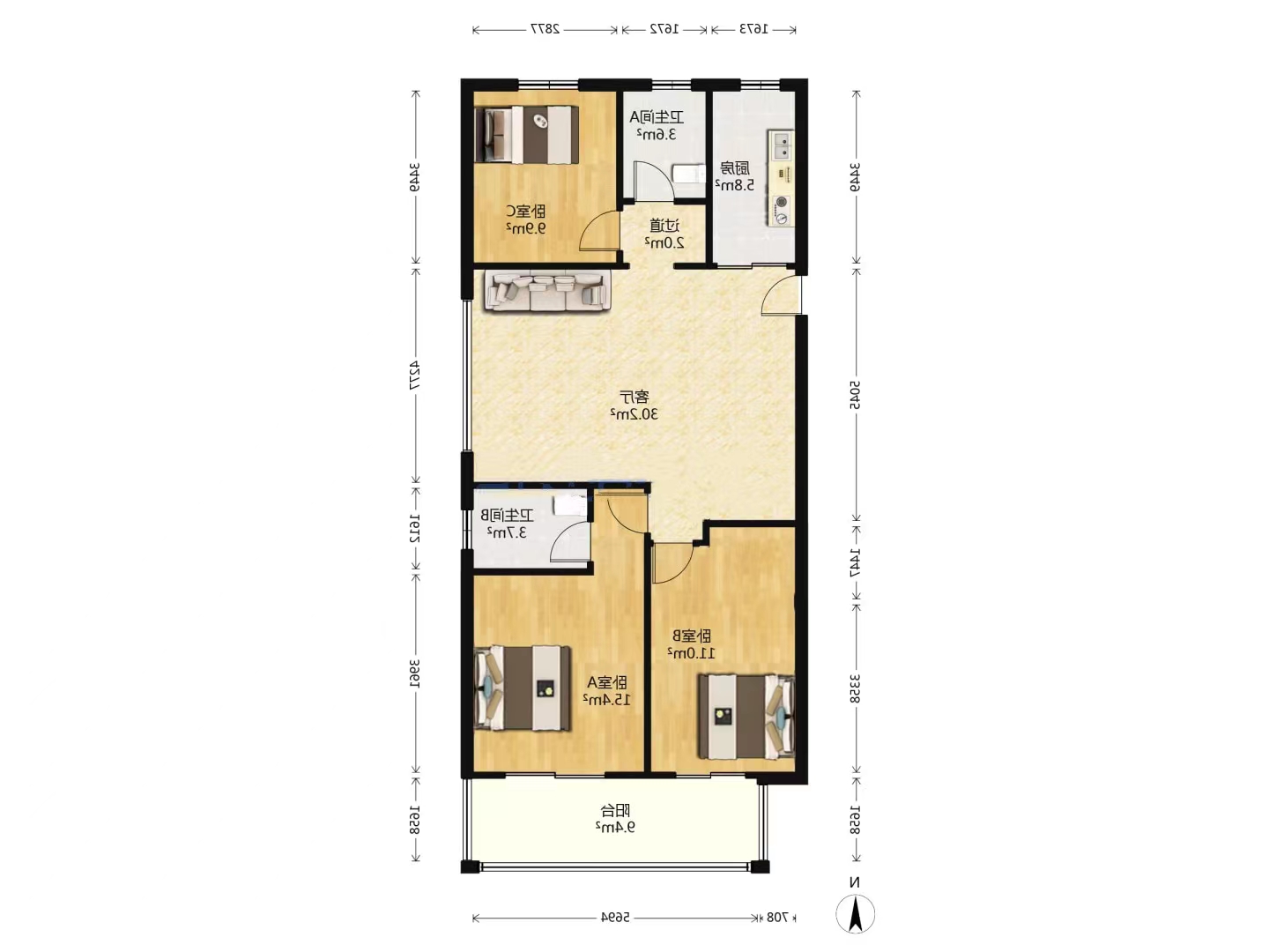 3室2厅1卫1厨 · 110.7㎡ 89.8万