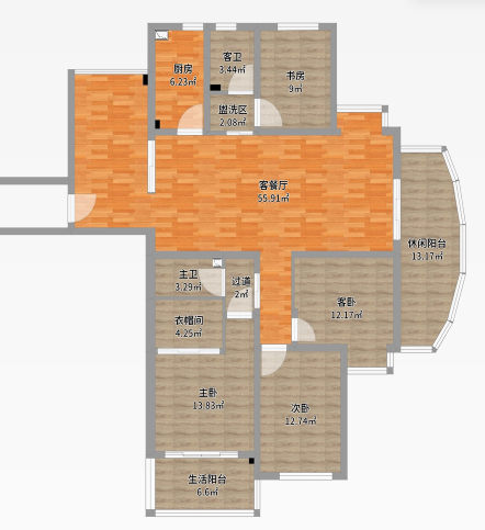3室2厅1卫1厨 · 131.5㎡ 88.8万