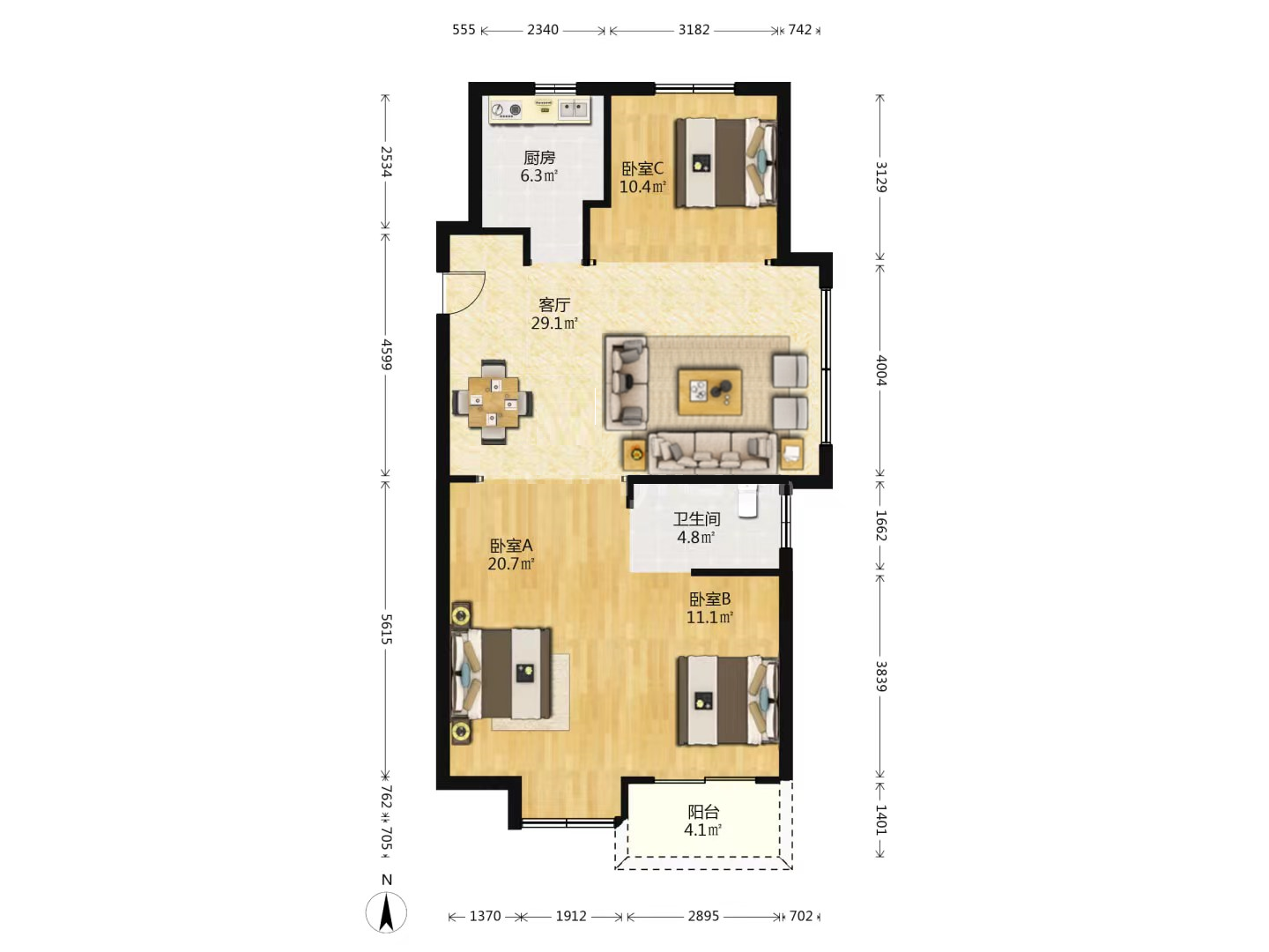 3室2厅2卫1厨 · 123.17㎡ 129.8万