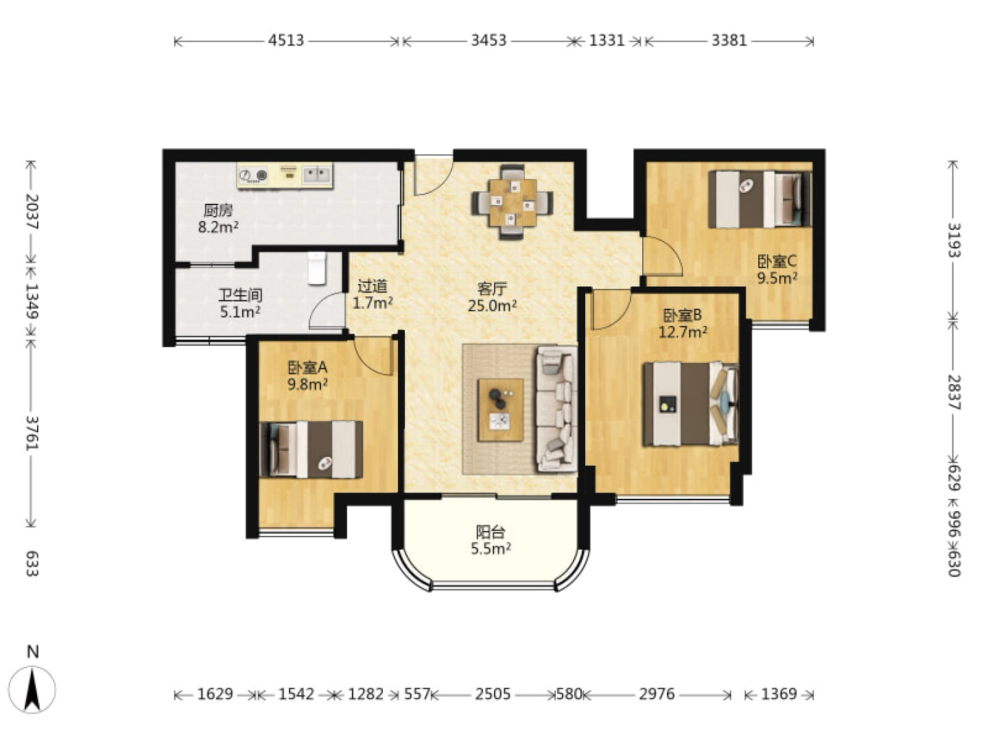 3室2厅1卫1厨
