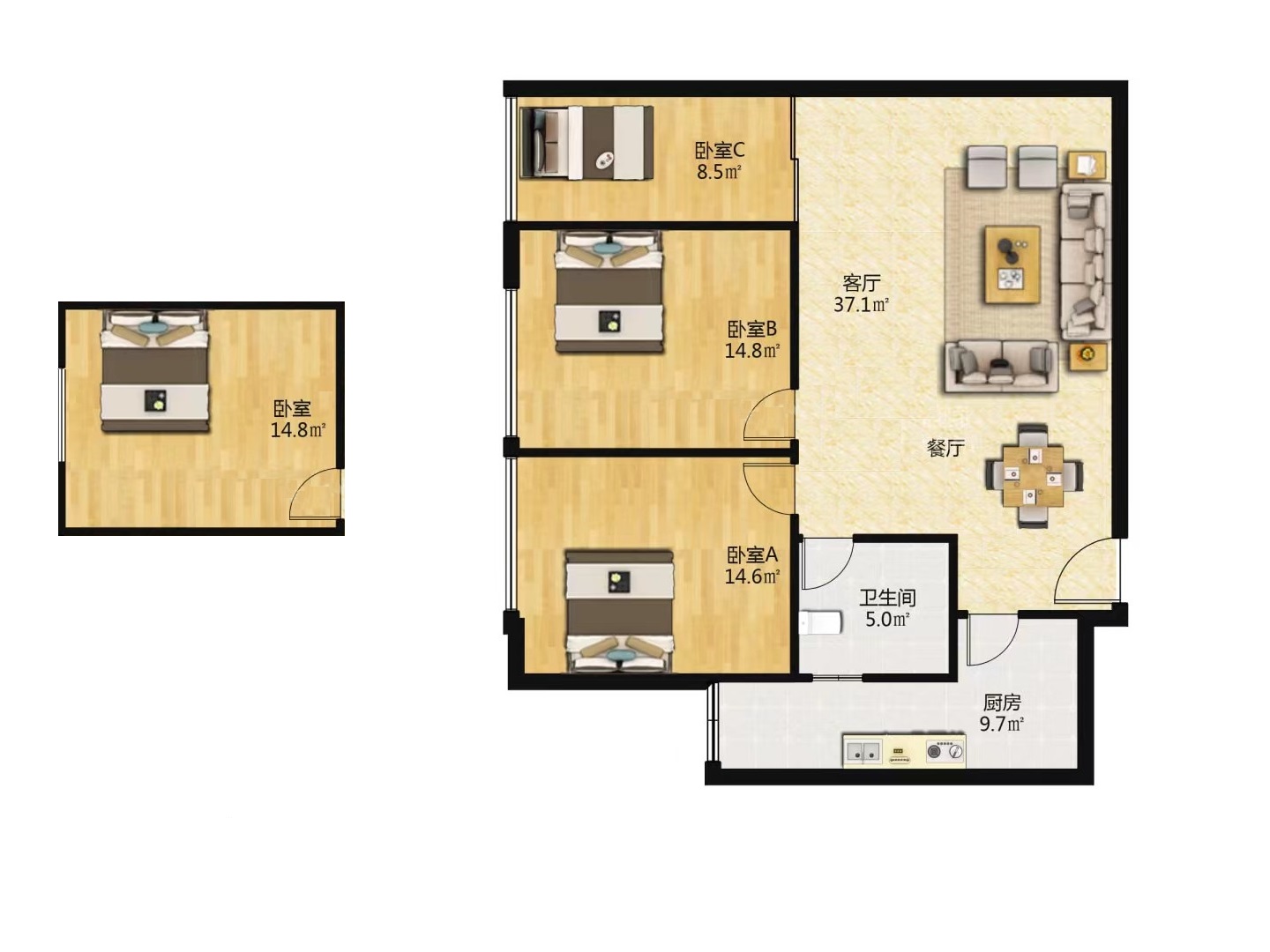 3室2厅2卫1厨 · 171㎡ 190万