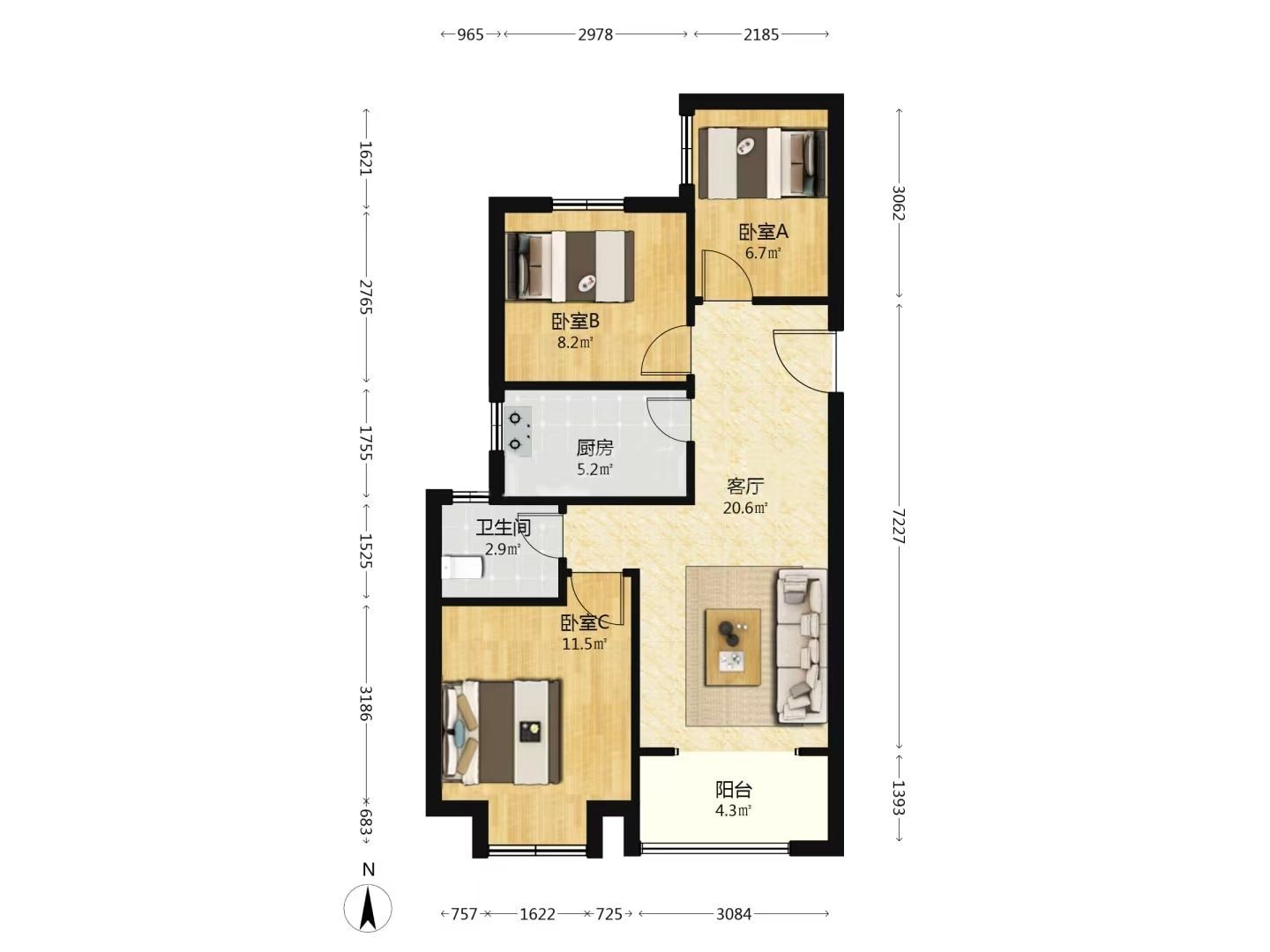 2室2厅1卫1厨 · 68.5㎡ 43万