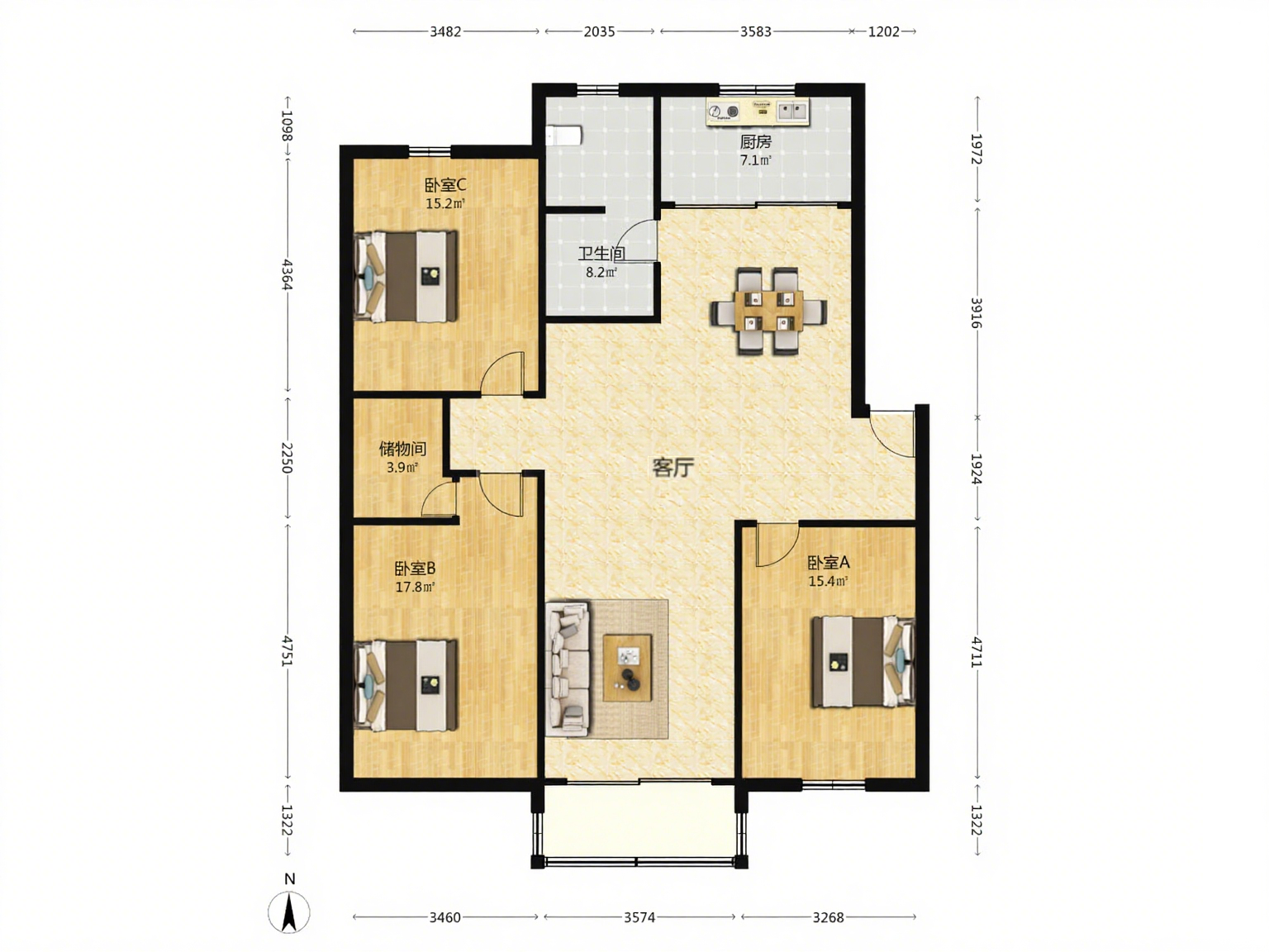 3室2厅1卫1厨 · 99㎡ 59.8万