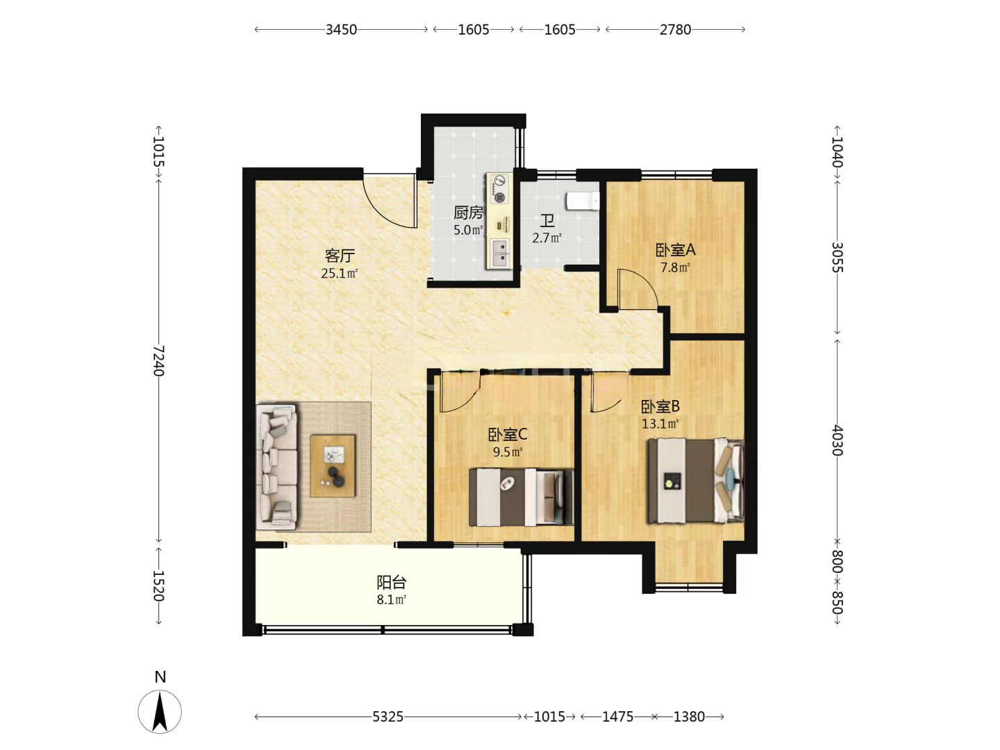 3室2厅1卫1厨 · 105㎡ 83.8万