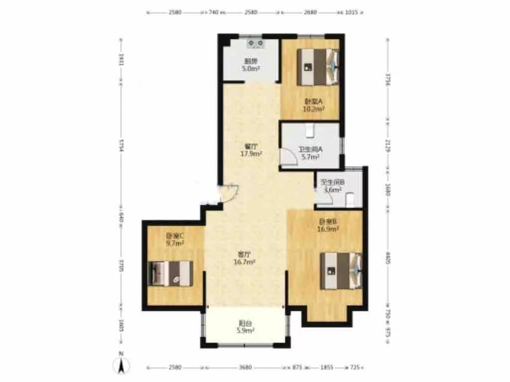 3室2厅2卫1厨 · 114.17㎡ 56.8万