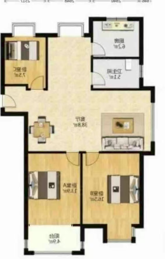 3室2厅1卫1厨 · 126.88㎡ 89万