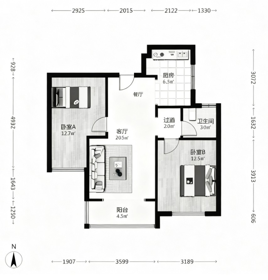 2室2厅1卫1厨 · 77.53㎡ 45.8万