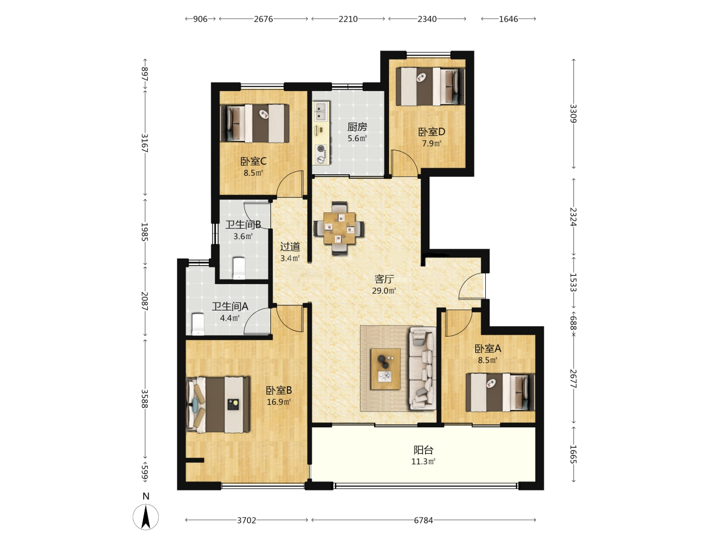 4室2厅2卫1厨 · 131㎡ 110万