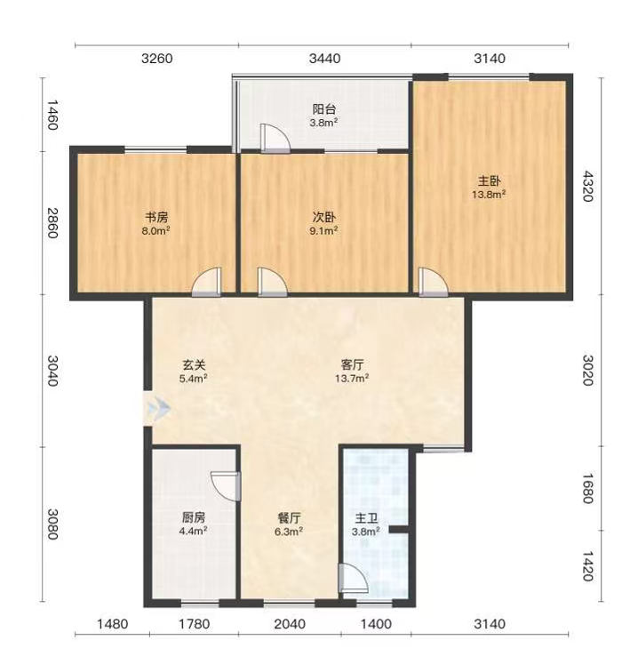3室2厅1卫1厨 · 80.37㎡ 43.8万