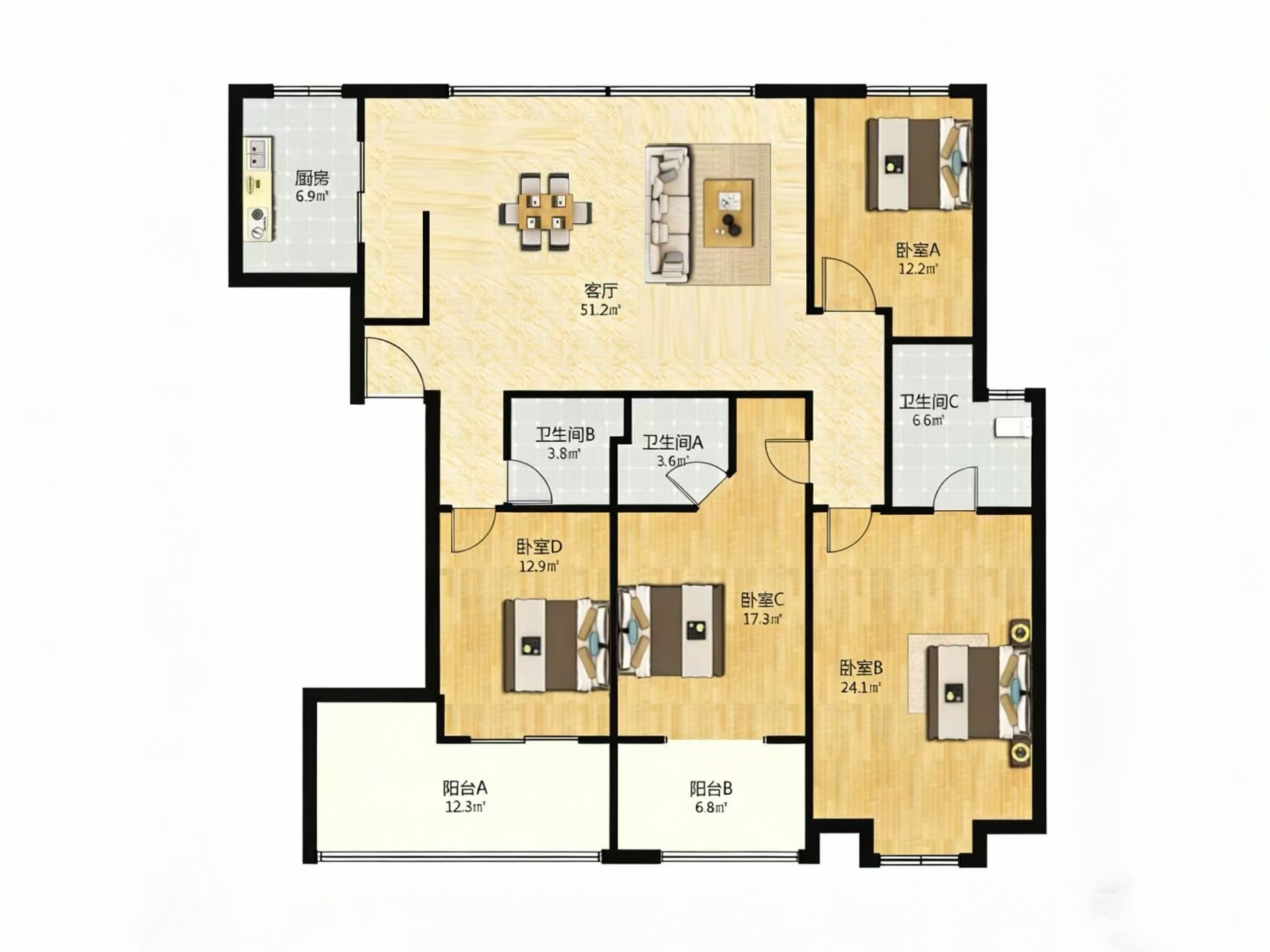 4室2厅3卫1厨 · 203㎡ 458万