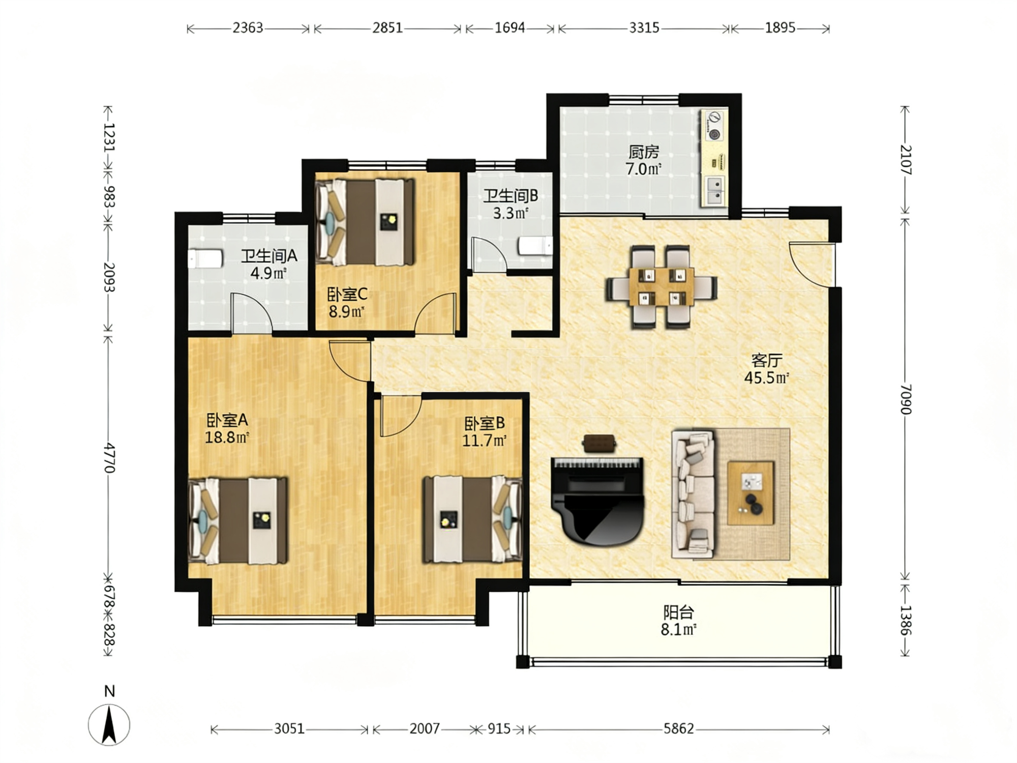 3室2厅2卫1厨