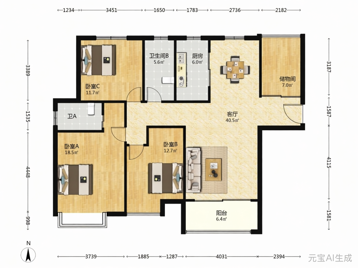 2室2厅1卫1厨 · 107㎡ 128万