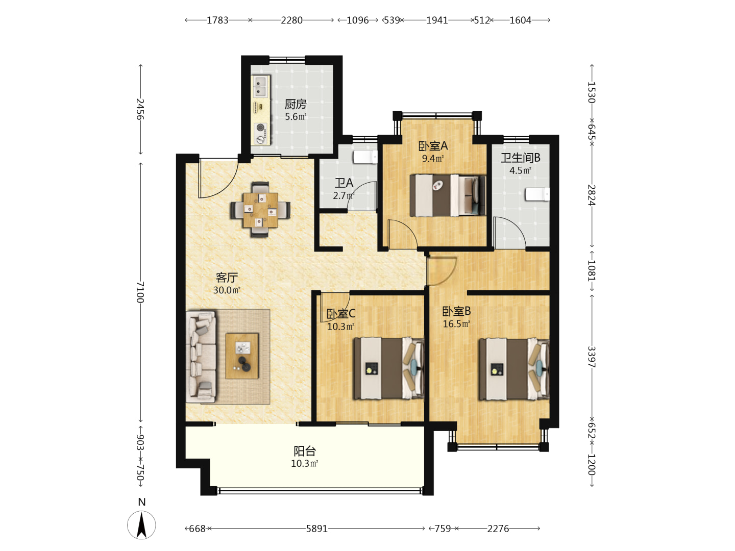 3室2厅2卫1厨 · 117.04㎡ 89.8万