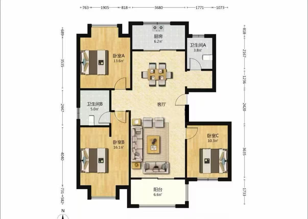 3室2厅1卫1厨 · 116.37㎡ 85.8万