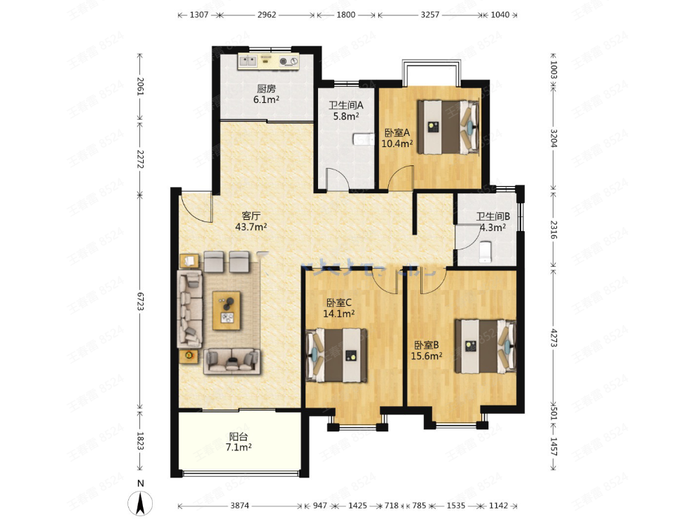 3室2厅2卫1厨 · 128.55㎡ 100万
