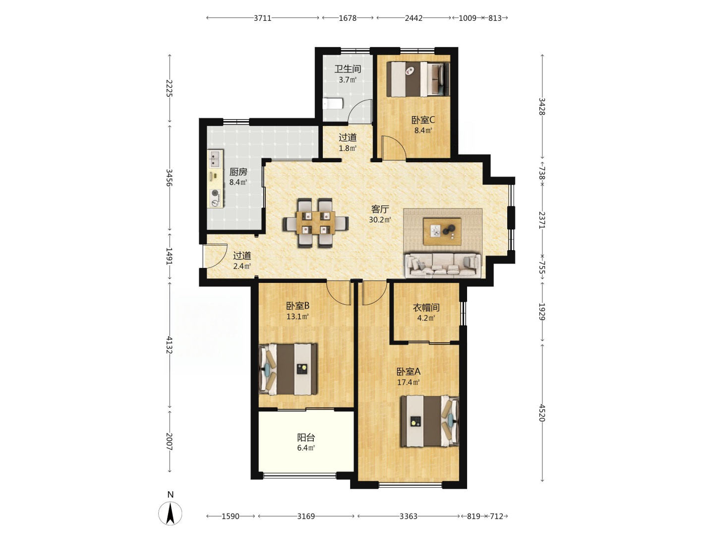 4室2厅1卫1厨 · 130㎡ 88.8万