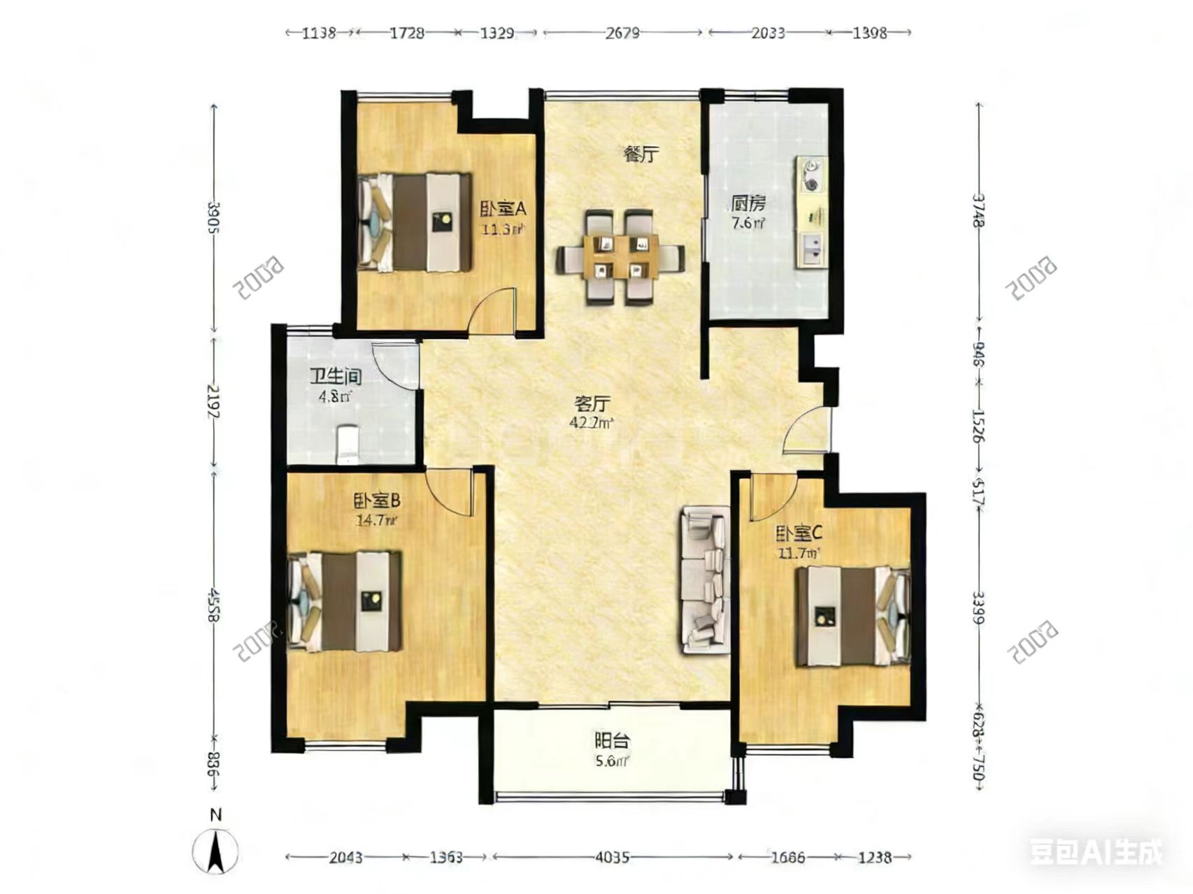 3室2厅1卫1厨 · 119.38㎡ 85万
