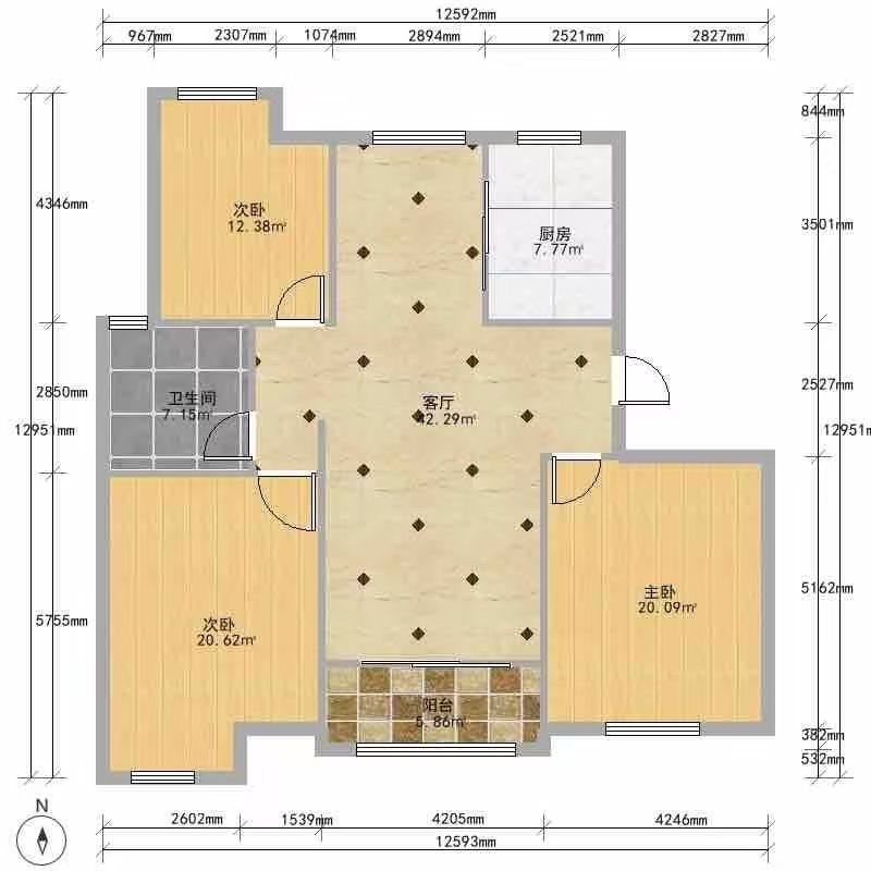 92.8 万 单价7178元/平