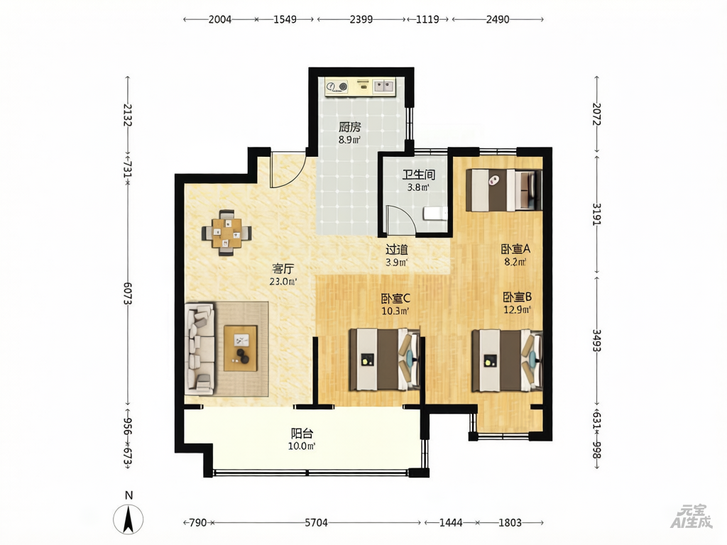 3室2厅1卫1厨