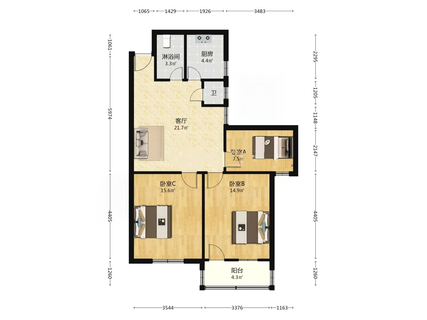 3室2厅1卫1厨 · 106㎡ 85万
