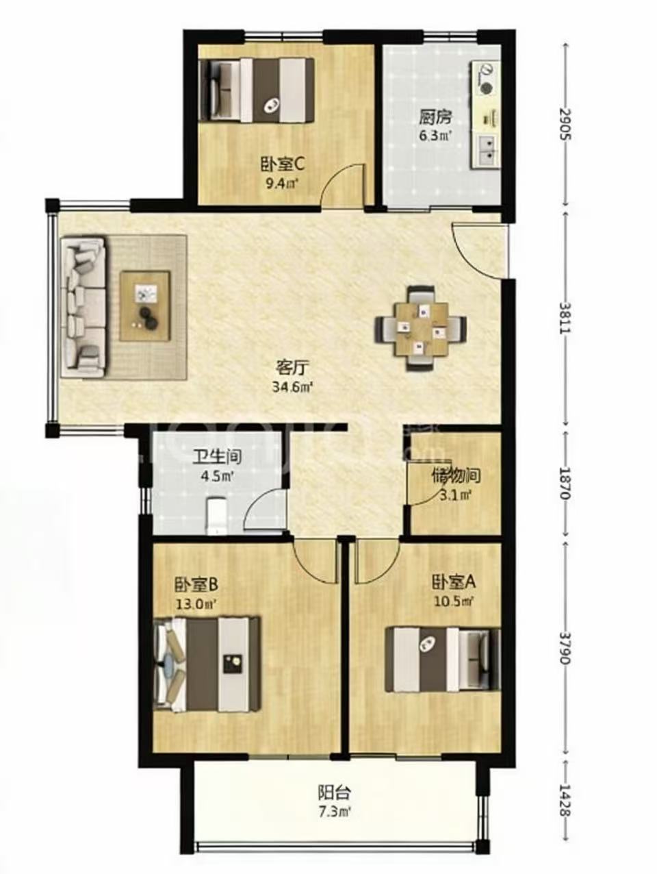 3室2厅1卫1厨 · 105㎡ 90万