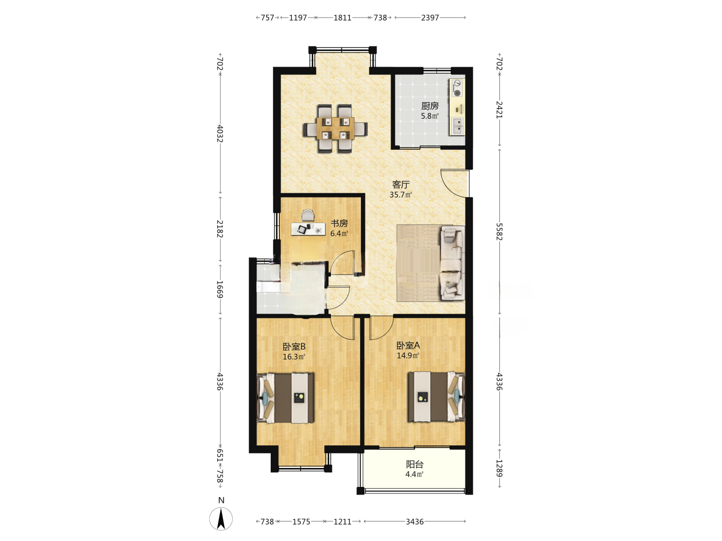 3室2厅2卫1厨 · 136㎡ 81.8万
