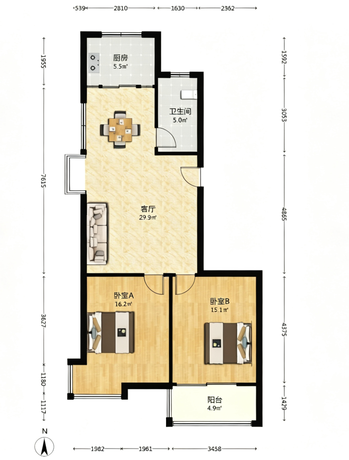 2室2厅1卫1厨 · 95㎡ 49.8万