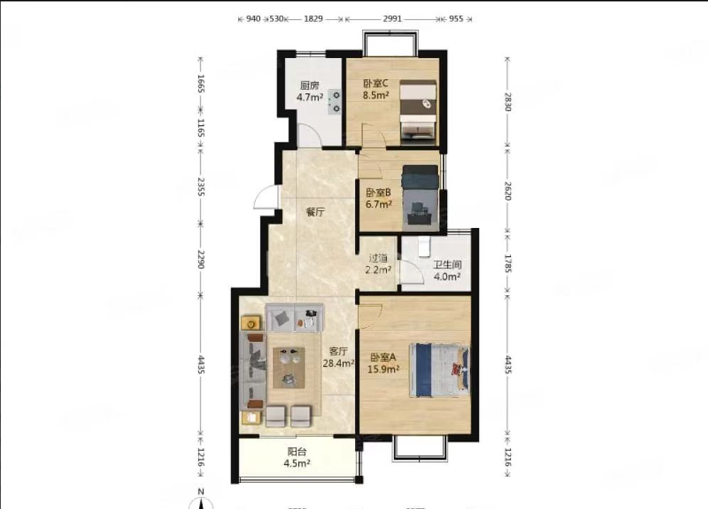 3室2厅1卫